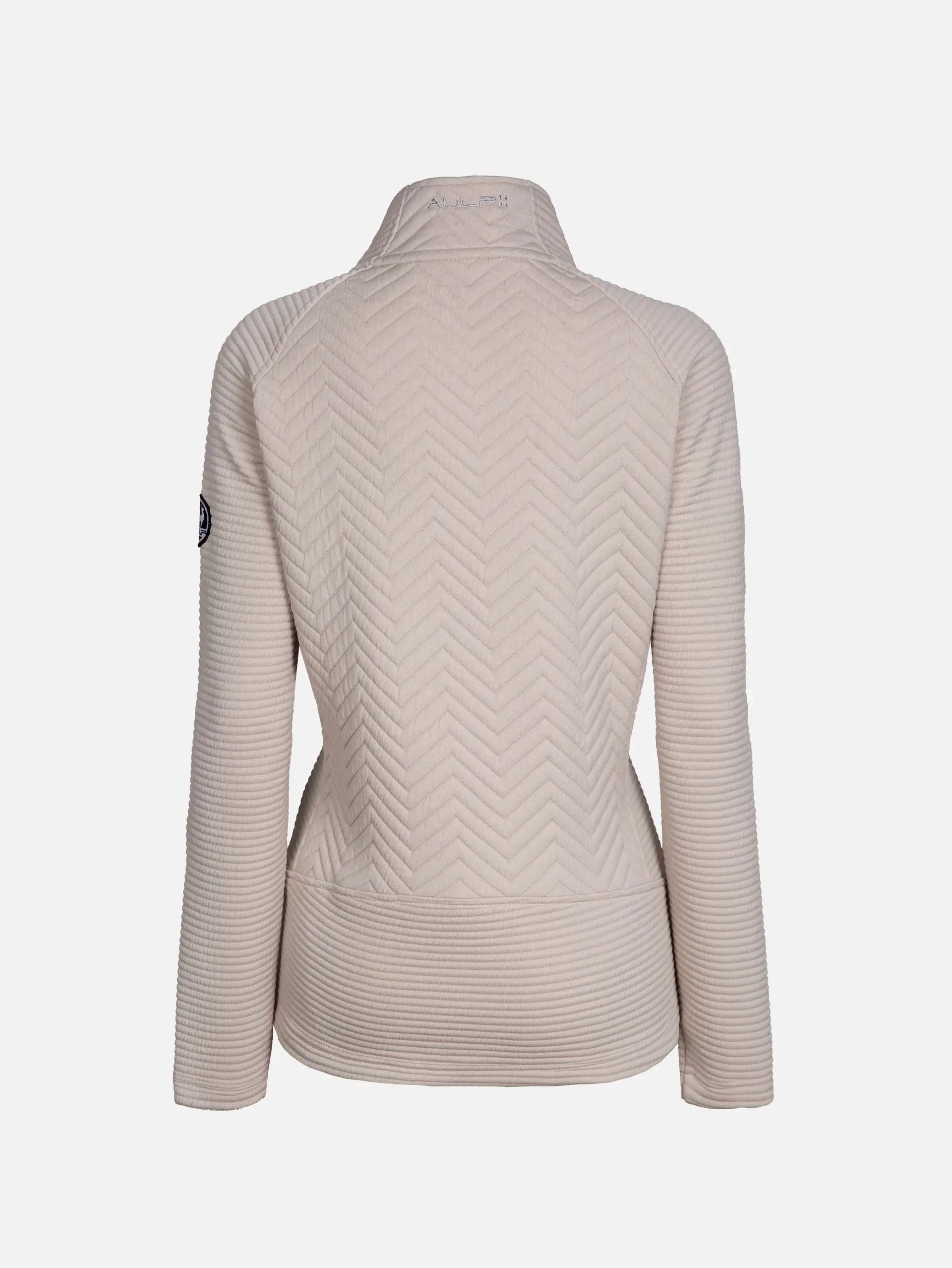 Polar damski SIMIX Aulp to wszechstronna bluza, którą można nosić na dwa sposoby: jako drugą warstwę pod kurtką zewnętrzną lub samodzielnie, w zależności od aktualnych potrzeb. Połączenie dzianiny typu Jacquard oraz konstrukcji bi-matière sprzyja wyjątkowej cyrkulacji powietrza, zapewniając optymalną oddychalność podczas aktywności fizycznej.