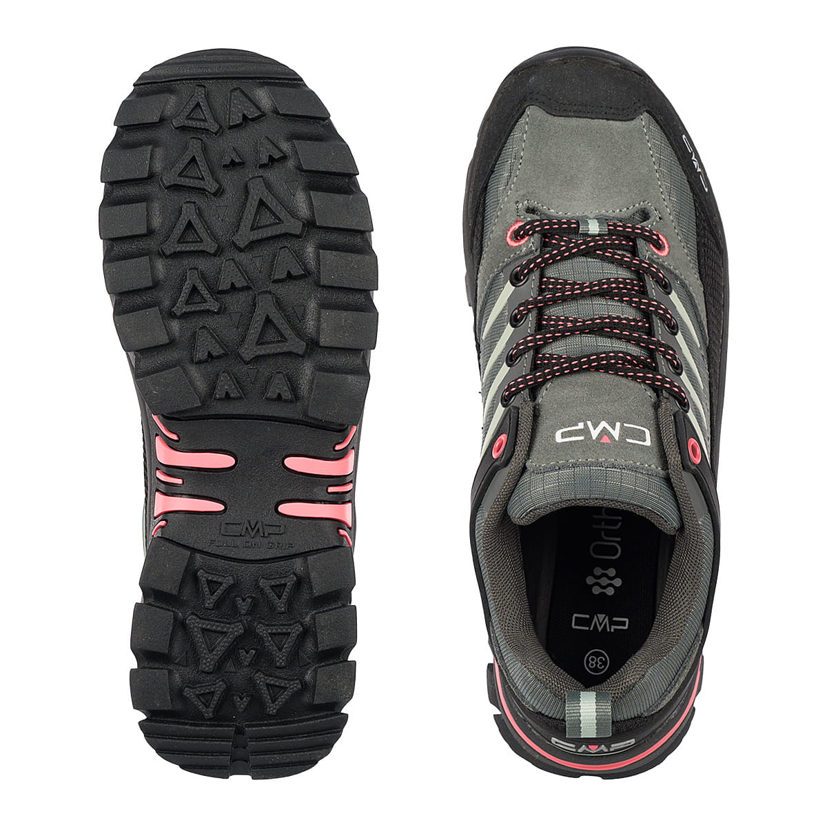 Gumowa podeszwa CMP Full On Grip z agresywnym bieżnikiem zapewnia pewny krok na kamieniach, błocie i mokrych szlakach.