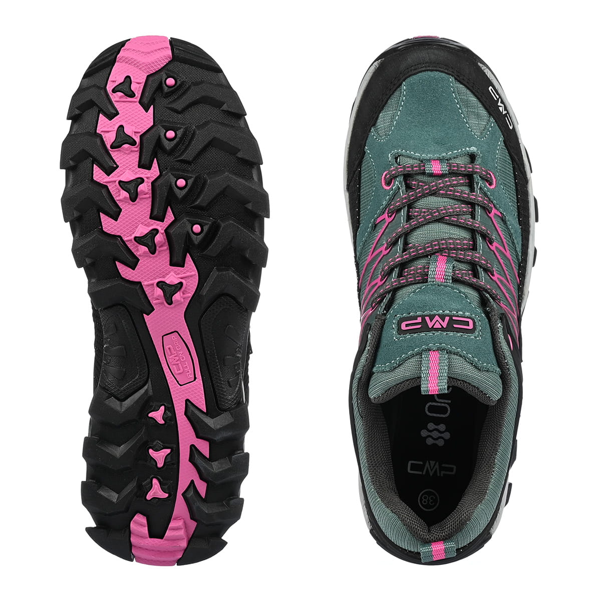 Podeszwa oparta o technologię CMP FULL On GRIP zapewni bezpieczeństwo i pewny krok użytkownika w niemal każdych warunkach pogodowych. Stosując agresywny wzór bieżnika, sprawdzi się zarówno na suchych, jak i mokrych nawierzchniach, przy zachowaniu niskiego poziomu ścieralności.