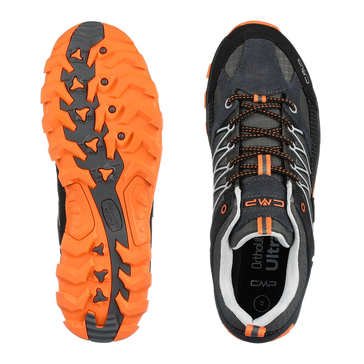 Podeszwa oparta o technologię CMP FULL On GRIP zapewni bezpieczeństwo i pewny krok użytkownika w niemal każdych warunkach pogodowych. Stosując agresywny wzór bieżnika, sprawdzi się zarówno na suchych, jak i mokrych nawierzchniach, przy zachowaniu niskiego poziomu ścieralności.