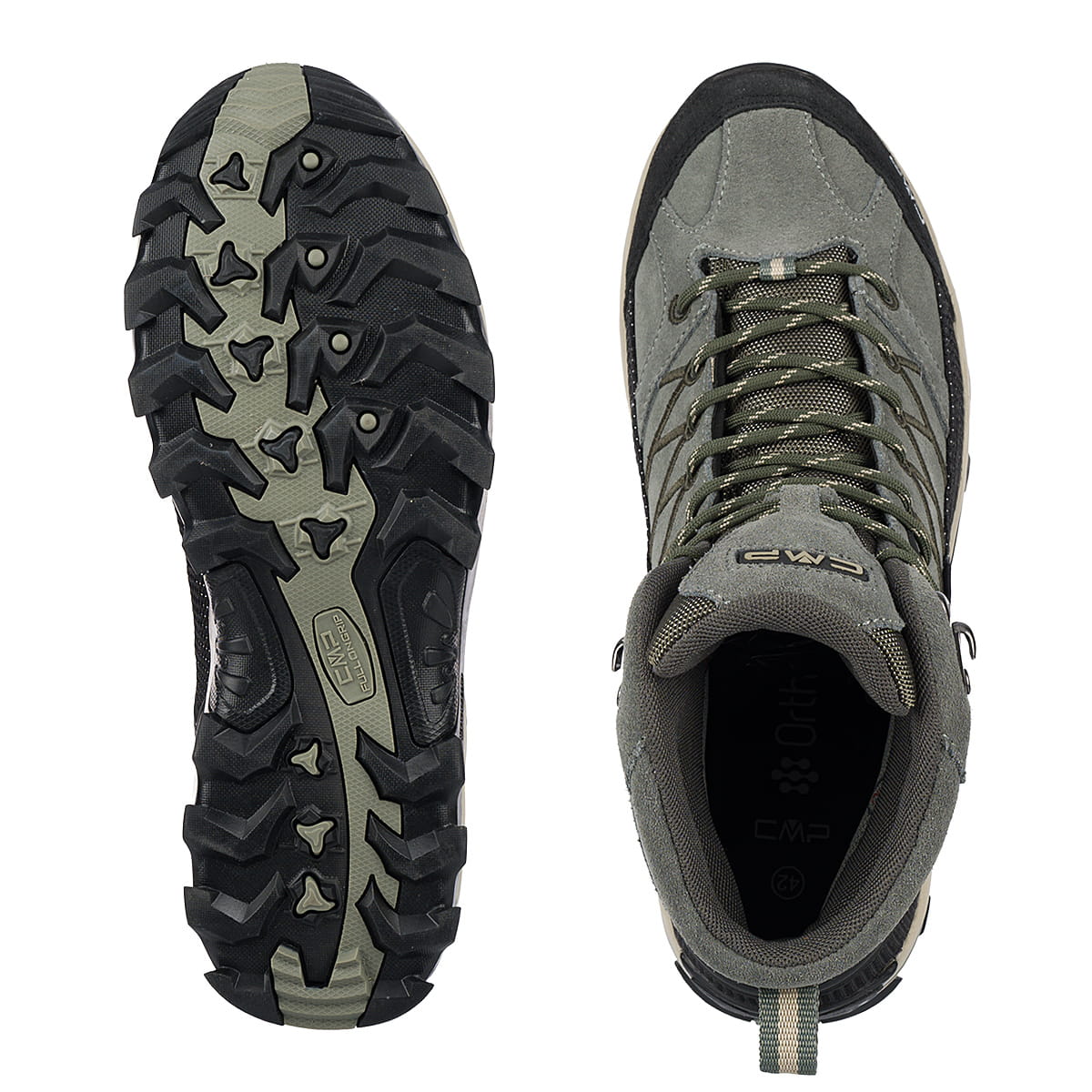 Podeszwa - oparta o technologię CMP FULL On GRIP zapewni bezpieczeństwo i pewny krok użytkownika w niemal każdych warunkach pogodowych. Stosując wzór bieżnika w jodełkę, sprawdzi się zarówno na suchych, jak i mokrych nawierzchniach, przy zachowaniu niskiego poziomu ścieralności.