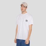 T-shirt posiada mały nadruk na klatce piersiowej i duży nadruk na plecach. Na całej powierzchni koszulki został naniesiony efekt acid wash.