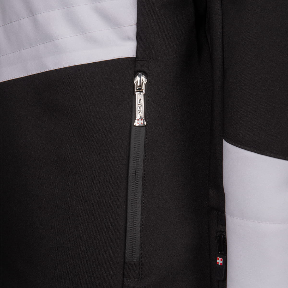 Ochrona przed śniegiem – zintegrowany pas śnieżny z gumką zapobiega przedostawaniu się śniegu pod kurtkę podczas jazdy na nartach i innych aktywności zimowych.