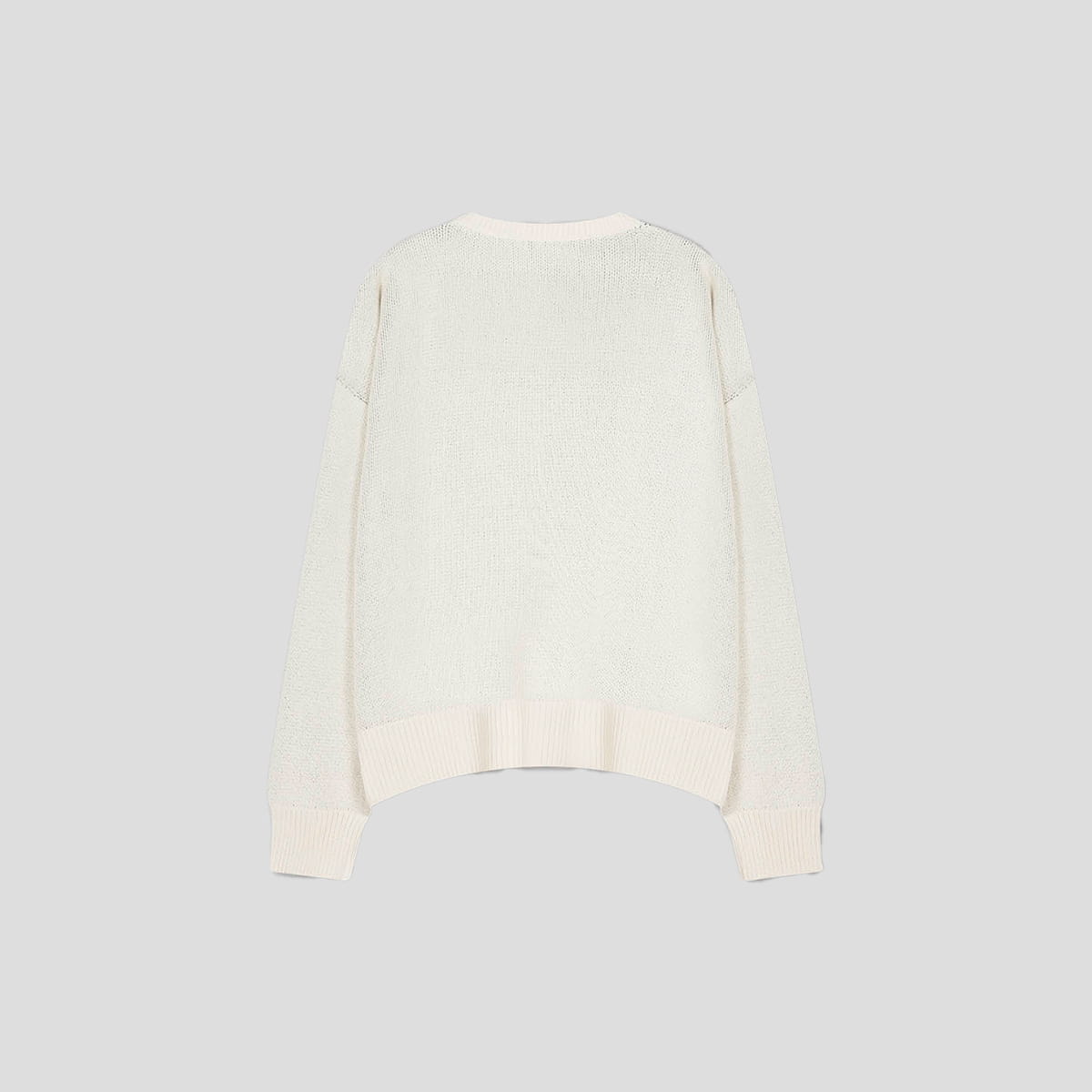 Typografia na froncie swetra to więcej niż estetyka – to zakłócenie porządku w najczystszej formie. Zniekształcone, dynamiczne litery CHAOS wyglądają jak echo krzyku lub odbicie rzeczywistości w krzywym zwierciadle. Nie są równe, nie są przewidywalne – i właśnie dlatego są autentyczne.