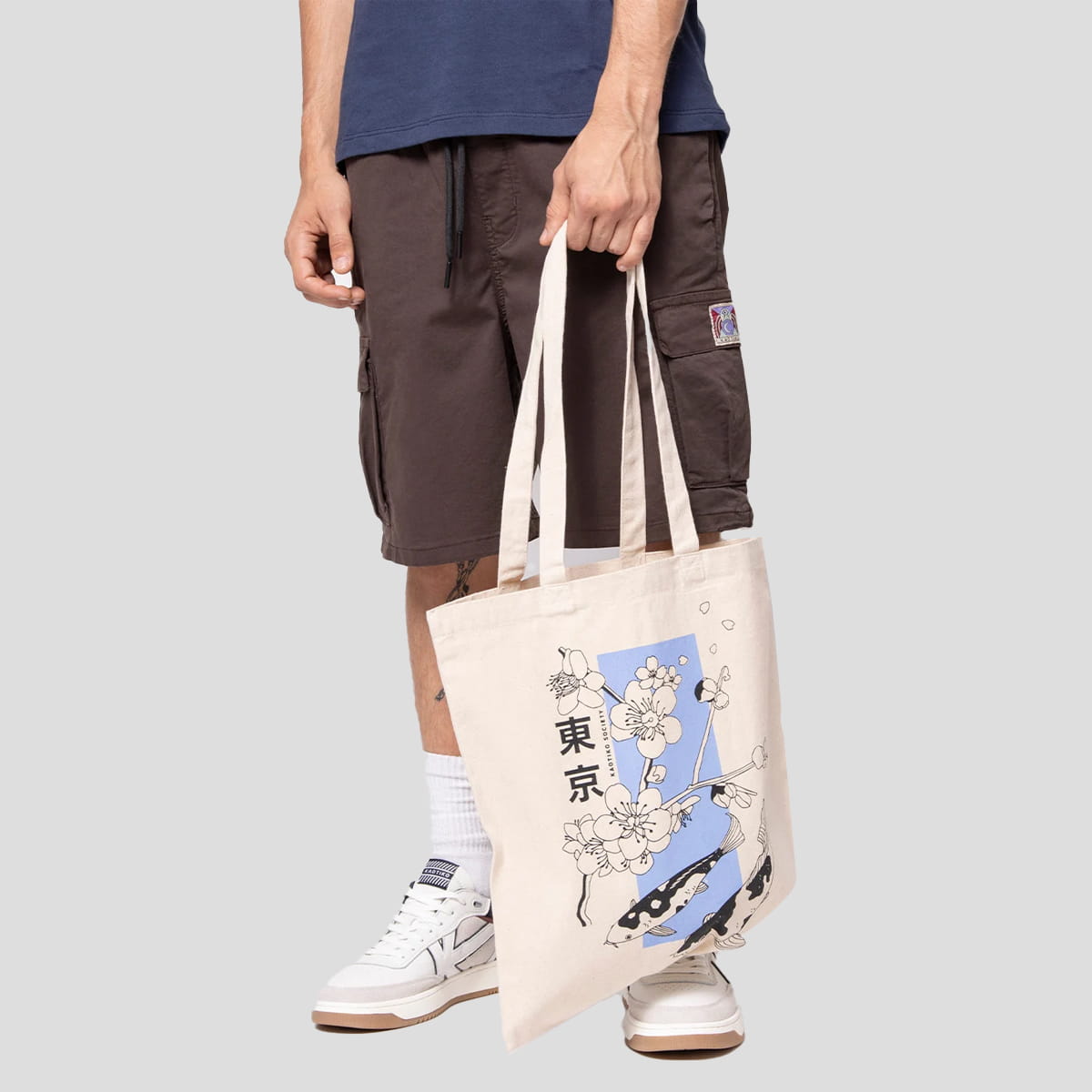Torba KAOTIKO KOI została zaprojektowana tak, aby znosić trudy codziennego użytkowania - wysokiej jakości bawełna i płócienny splot tkaniny tworzą wytrzymałą konstrukcję, odporną na przypadkowe uszkodzenia.